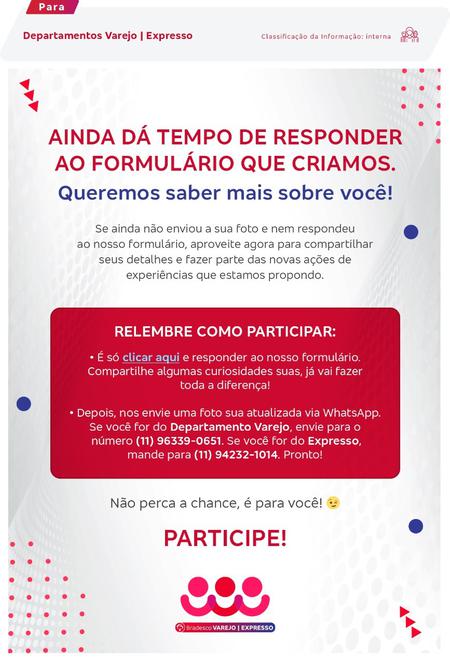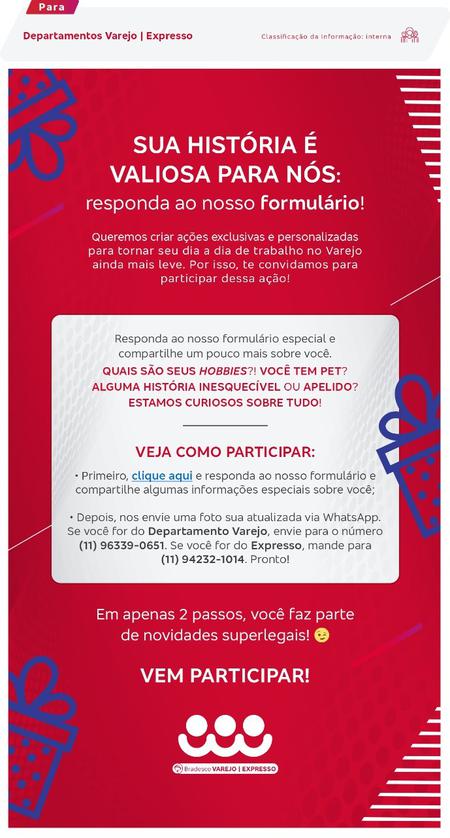 Também escrevi temporariamente para o endomarketing do Bradesco e joguei alguns exemplos aqui aleatoriamente. Fazia Notícias, revistas, e-mails, forms, comunicados e inclusive, A BIA, IA do Bra, era eu quem escrevia quando o assunto era a comunicação interna.