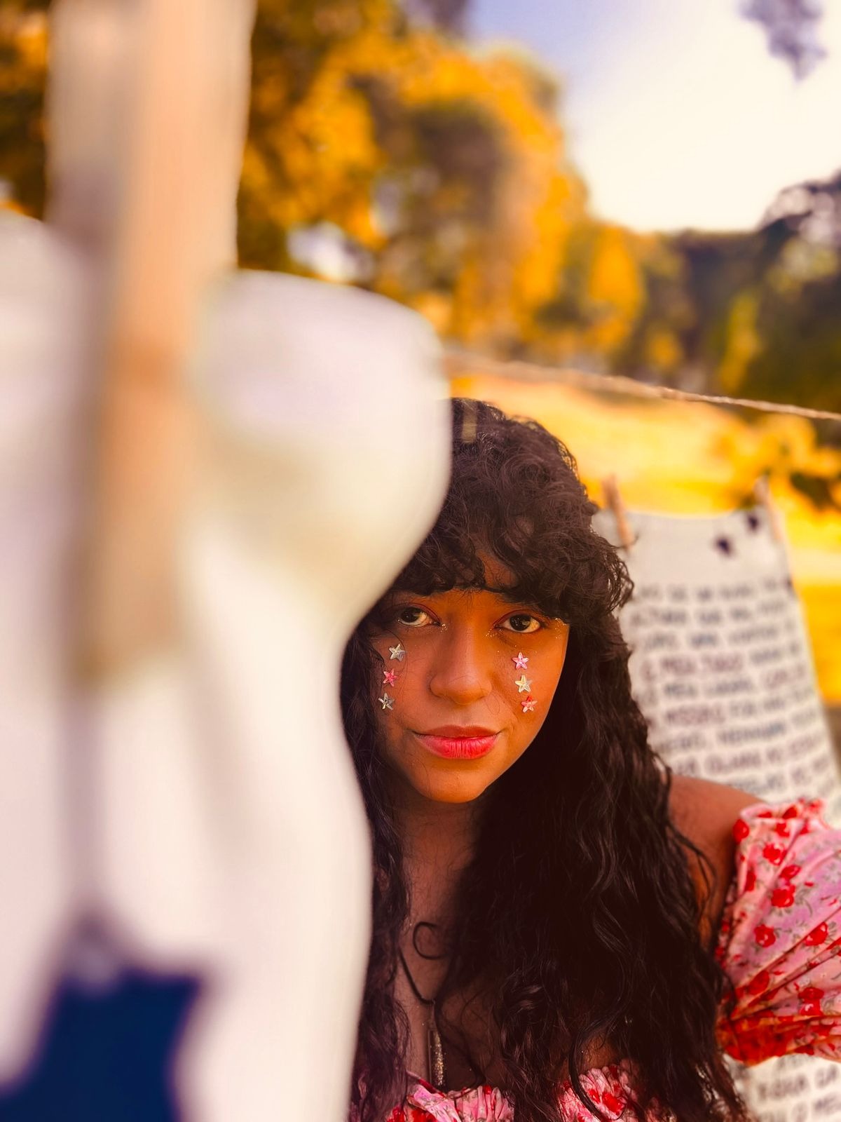 As "lágrimas" no meu rosto me conectam com o público em uma representação de que a dor pode sim ser ressignificada. Escrevo a dor de um jeito tão bonito, que lágrimas viram estrelas.